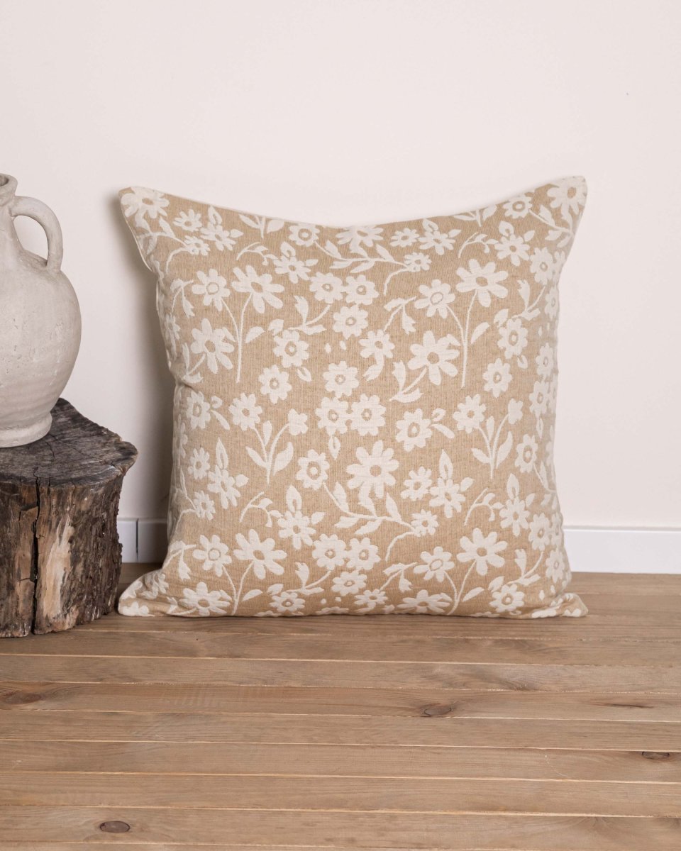 Cojín bordado con textura, elaborado en algodón natural. Disponible en verde keike y ocre, es perfecto para añadir personalidad y estilo a tu decoración. Combina suavidad, confort y un diseño elegante que viste tu hogar. Contiene relleno.