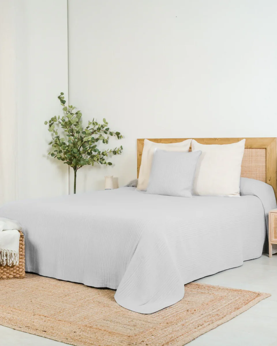 Descubre la colcha de doble tela en algodón jacquard, suave, transpirable y de alta calidad, ideal para aportar confort y estilo al dormitorio.